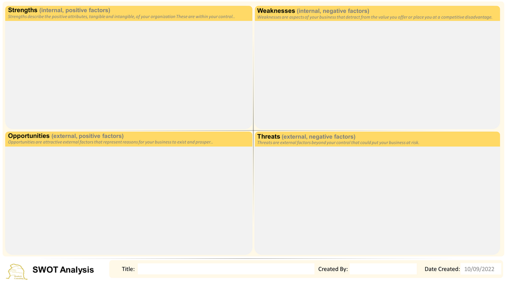 A SWOT analysis is designed to facilitate a realistic, fact-based, data-driven look at the strengths and weaknesses of an organisation, initiative, or industry. Don’t be afraid to iterate and build on those assumptions over time.